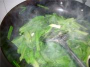 下菜油3两大火,下蒜苗,莴苣。烟炒熟装盆留油。</li> <li>5