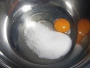 鸡蛋打入盆中与白糖混合。</li> <li>3
