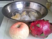 水果银耳羹:准备材料,银耳泡水里发下,看看可爱的苹果和艳艳火龙果。</li> <li>2
