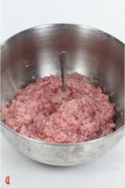 猪肉和姜葱一起剁碎,加小半碗清水搅打上劲。</li> <li>5