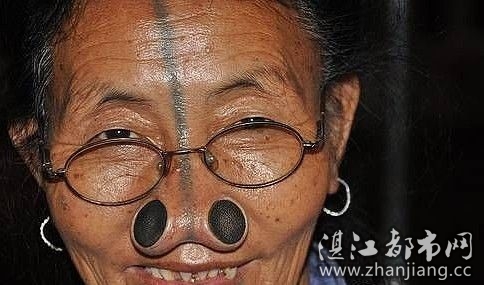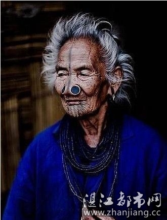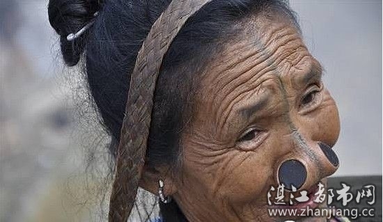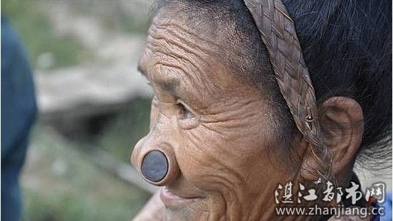 在印度的东北部有一个名为阿帕塔尼(Apatani)部落。这支部落的女性被誉为所有阿鲁纳恰尔邦部落中最漂亮的。但美丽的外表也成为她们的一种负担,为了保护自己免遭其他部落入侵者伤害,她们尽可能让自己变得不那么吸引人,具体做法就是将大木塞塞入鼻子。!过去这样做是因为由于该民族的女人被认为是天生丽质,藏南第一,所以为了防止别的民族来抢女人,他们只有牺牲女人的容颜。