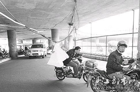 20日早上,一名骑着摩托车的男青年在路过赤坎立交桥底时,不慎被桥底半垂的通信电缆套住并绊倒,所幸其手脚只轻微擦伤,并无大碍。