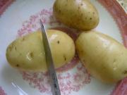 <br/>土豆洗好,在土豆上面用刀轻轻的切一个圈,这个是方便下面剥皮用(看家有妙招学习的)