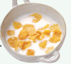 原料:无糖玉米片4大匙,牛奶5大匙,高丽菜20克。