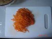 胡萝卜切成细丝,越细越好,这样容易熟。</li> <li>3