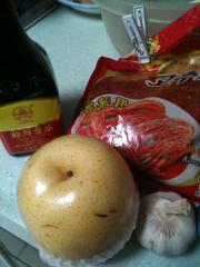 <br/>将蒜瓣和水晶梨用搅拌机打成泥。搅拌时可以加盐。</li><li>5
