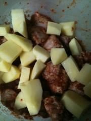 <br/>腌好排骨之后,我又放了个土豆,不过不建议大家放土豆,不然土豆把汤汁吸干了,排骨出锅就比较干了。</li></ul><ul><li>7