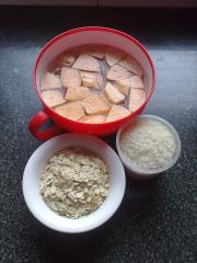 <br/>地瓜一个去皮切块泡在水里防止氧化变黑,燕麦一小碗,珍珠米一小杯。</li><li>2
