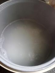 <br/>一杯的珍珠米,洗净后加水,摁下电饭煲的煮饭键煮开,因为是电饭煲,所以要注意水开后气泡会从气孔里溢出。</li><li>3
