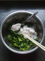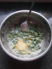 <br/>将面粉和菠菜搅拌均匀后加入一勺香油和一小把芝麻。</li><li>9