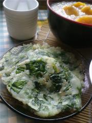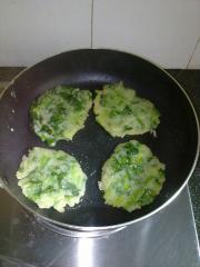 <br/>把搅拌均匀后的面糊用煎锅煎成小块的菠菜煎饼。</li></ul><ul><li>10