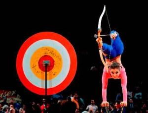 <br> 21岁的莉莉亚是一名极富有吸引力的杂技演员,她向观众展示了用脚拉伸弓箭并完成射击的技能。在电视节目“吉米·金梅尔脱口秀”和“美国达人秀”中的表演为她赢得了不少人气,她的身体柔韧度和弯曲技巧也广为人知。她经常为NBA、 NHL和NCAA的比赛表演,也时常参加ESPN体育中心的开幕表演。<br> <br> <br>