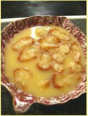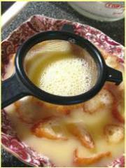 <br/>将油条片放在碟子上,注入蛋液,用筛子隔开蛋液的泡沫。</li><li>5