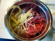 3、滚汤汆肉变色即可,久了口感不佳!一定要选择稍好的西冷牛肉牛柳口感最佳,肥牛肉片也可。此做法就和北方的涮肉差不多,只是事先把肉腌制好而已。
