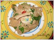 猪肾也可以切花刀,我图方便片成薄片,快又省时。猪肾最怕煮老了,用开水泡熟可以避免。泡过冰水的猪肾吃起来凉凉脆脆的,很是开胃。