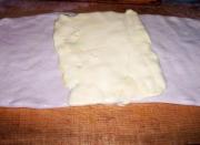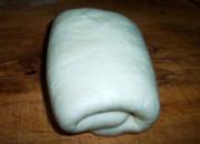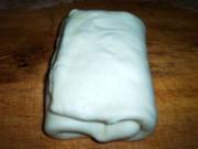 <br/>将冻好的面团擀成黄油2倍大.将片状黄油放在面团中间。</li><li>6