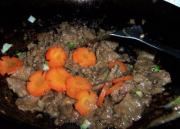 <br/>牛肉片变色后加入葱姜碎继续煸炒。</li><li>9