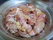 <br/>鸡肉切成小块,用料酒、蚝油、生抽和糖腌制30分钟。</li><li>3