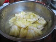 <br/>菠萝切成小块,用温盐水泡一下。</li></ul><ul><li>4