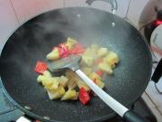 <br/>炒锅洗净,再放少许油,烧热后倒入菠萝和菜椒翻炒。</li><li>8