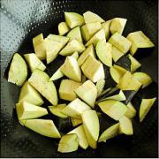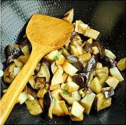 炸土豆的油不用太多,炸好土豆放入茄子后油会全部被吸收,没关系火调成中小火,慢慢的茄子变软油就会出来了。
