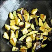 <br/>茄子洗净切块,放入油锅中。</li></ul><ul><li>4