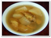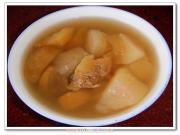 2、这款汤所用时间可比常规的老火汤短,只需煲到苹果雪梨软烂即成。
