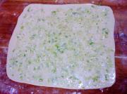 <br/>均匀在表面涂抹上油,撒少许盐后,将葱花铺满表面。</li><li>5
