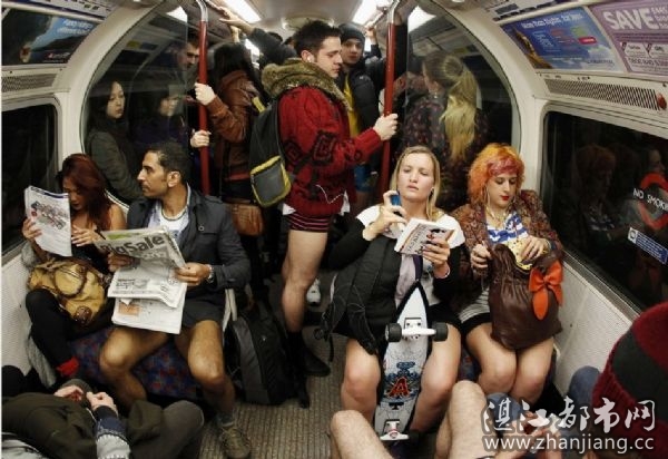 作为全球一年一度“不穿裤子乘地铁”活动的一部分,大约100名伦敦人当地时间1月8日冒着严寒,下半身只穿内裤、短裙等乘坐伦敦地铁。