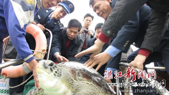 湛江新闻网讯:1月11日12时40分左右,廉江市海洋与渔业局、廉江渔政大队相关工作人员和当地渔民等二十多人在龙头沙人工鱼礁364海域,将一只三百多岁的大海龟放归大海。