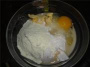 <br/>在面粉中入鸡蛋、黄油、化开的酵母、奶粉、盐2克。</li><li>2