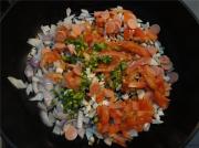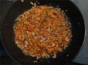 <br/>再入青椒丁、西红柿丁、香菇丁、洋葱丁、三克盐、糖炒。</li><li>17