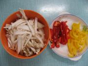 <br/>先把杏鲍菇和彩椒清洗干净。然后分别把他们切成丝。</li><li>2