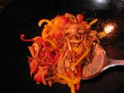 <br/>放入黄椒和红椒继续翻炒。</li><li>12