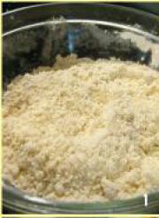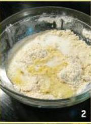 <br/>将面粉、用料理机打碎的燕麦片(Whole Grain Oat Meal)、泡打粉、盐和糖粉放在一大碗里用手搅拌搓捏均匀(也就是干性材料)成粗粒状。</li><li>2