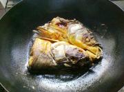 <br/>鱼放入锅内时不要动它,让油炸上5分钟左右(因为油少,鱼头大,此时可以转动一下锅,让油均匀的炸到每一个地方)等鱼头表面金黄就可以用锅铲插进鱼头下方把鱼头翻边,继续炸另一边至微金黄。(鱼一定得炸透了才香)</li></ul><ul><li>7
