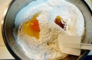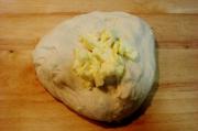<br/>搅拌均匀揉成面团,取出在案板上揉至均匀兑入固体奶油。</li><li>8