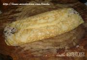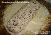 蛋皮上刷面粉糊,然后把肉馅用手攥成长条型铺在上面,压扁。</li><li>6