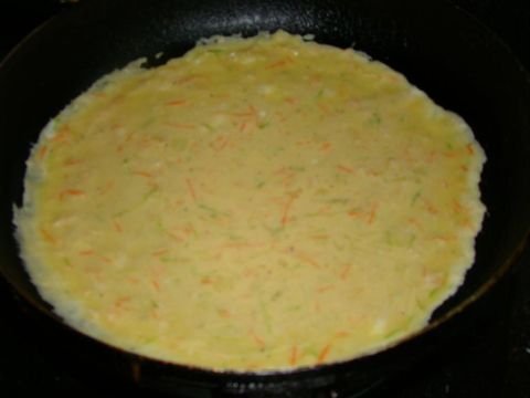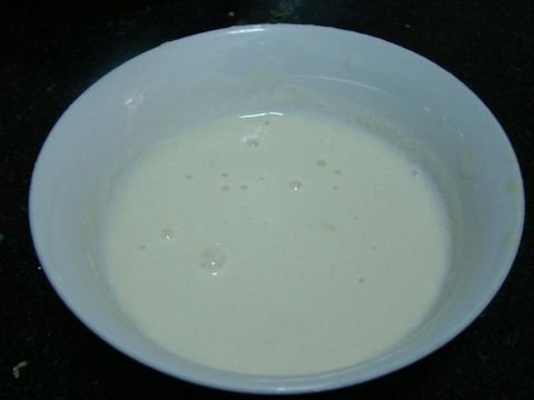 加水和成糊状,最好稍微稀一点,这样摊好的饼会更好吃(最好在调的时候加一个鸡蛋里面,这样摊出来的饼会很香软)