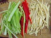<br/>芹菜,红辣椒,豆腐皮切丝。</li><li>2