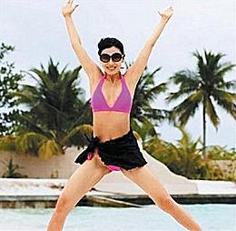 <br> 港星李嘉欣40岁生日前夕,在累积超过25万名粉丝的个人微博放上比基尼泳装照,提前为影迷送上大礼。她在海滩上张开双腿跳起,展现曼妙身材,也间接证明自己尚未怀孕。<br>