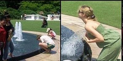 <br> 2010年5月,一名性感外国女性,在新加坡总统府喷泉泼水洗胸部,一名女市民目击之后拍照并传上网,还留言谴责。不过有报道说,除了有拿喷泉洗胸 部的人之外,还有人用泉水洗脸、洗脚,甚至干脆洗澡的。<br> <br> <br>