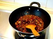 2、酱要用稍稀一些的为好,如发现稍干,可加一些水,酱要煸炒到完全没有生酱味才行,要把它的浓郁的香味炒出来,吃起来才美!