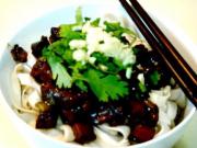 3、由于茄子是蔬菜类原料,因此在食用时也可以不放面码,脂肪一些香菜蒜末等拌食即可,再配以花椒油和辣椒油,吃起来更地道。
