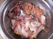<br/>蚬鸭,鸭肫,鸭肝切成小块,放盐,胡椒粉,料酒,生粉拌匀腌20分钟。</li></ul><ul><li>4