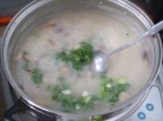 2)粥的浓稠程度可根据各人喜好调整,我喜欢米粒分明,所以米开花后就把鸭肉放进同煮。