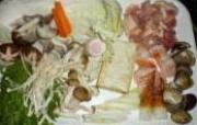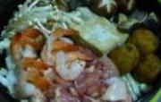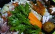 大白菜、鸡腿肉、菌菇、蓬蒿菜、豆腐、凤尾虾、蛤蜊、鱼竹轮、鱼板、胡萝卜、大葱、豆腐丸子。<ul><li>1