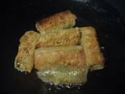 PS:1。这是从台湾的节目中学来的,有点中西结合的感觉。2.里面的馅料可以换成其他的,如果是肉末就变成了炸响铃。3.健康一点用煎不用炸,煎的时间不要过长,以免烧焦,要勤翻动,表面金黄即可用筷子夹出来。4.包的时候,卷的紧一些,这样炸的时候不会露馅。5.包的过程中,最后用鸡蛋液涂上,起粘连的作用,不会散开。这款小吃,要趁热食,炸好就要吃了,不然就不酥了,我喜欢沾醋吃,不但可以去油腻,还可以开胃助消化。非常适合老人小孩 特点: 里面有花生碎的酥香比较有嚼头外皮也酥层层酥加上里面的豆腐又很嫩配上香菜与沙拉酱口感很新颖营养价值也很高 补充蛋白质不饱合脂肪酸 卵磷脂 氨基酸维E 维C 等等