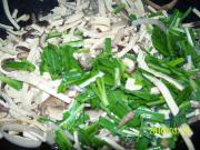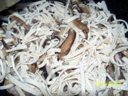 3、都说香菇炖鸡最好吃,不过如果像我一样不太喜欢那么浓的香菇味的话,切丝后用来配炒菜,不失为一个好办法呢,又没有很冲的味道,滑滑的口感又好。