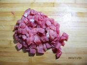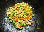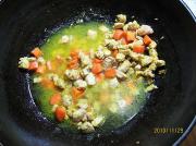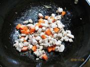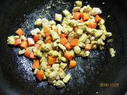 2、我做的是伪版的,其实,这菜应放香槟酒来提味,加些豌豆粒及红椒更为漂亮,我是用葫萝卜和青椒取代的。